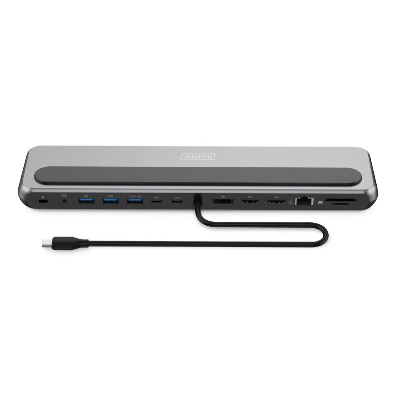 12-Port-USB-C-Dockingstation, max. 8K/30Hz mit HDR, HDMI, DP, max. 3 Monitore (MST), USB-C 3.2 Gen2, Gigabit-Ethernet, SD/Micro-SD, Audio, PD 100W