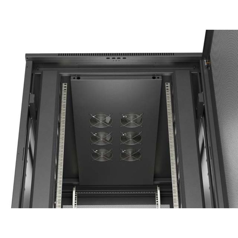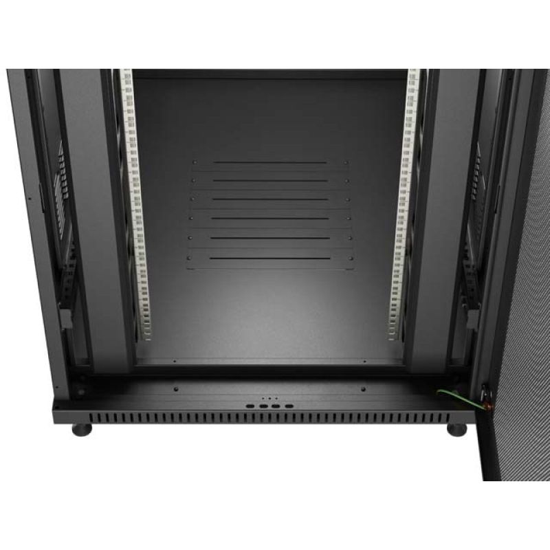 2. 19" 22U 800x1200 schwarzer Lanberg Stand-Rackschrank mit perforierten Türen (flach verpackt)