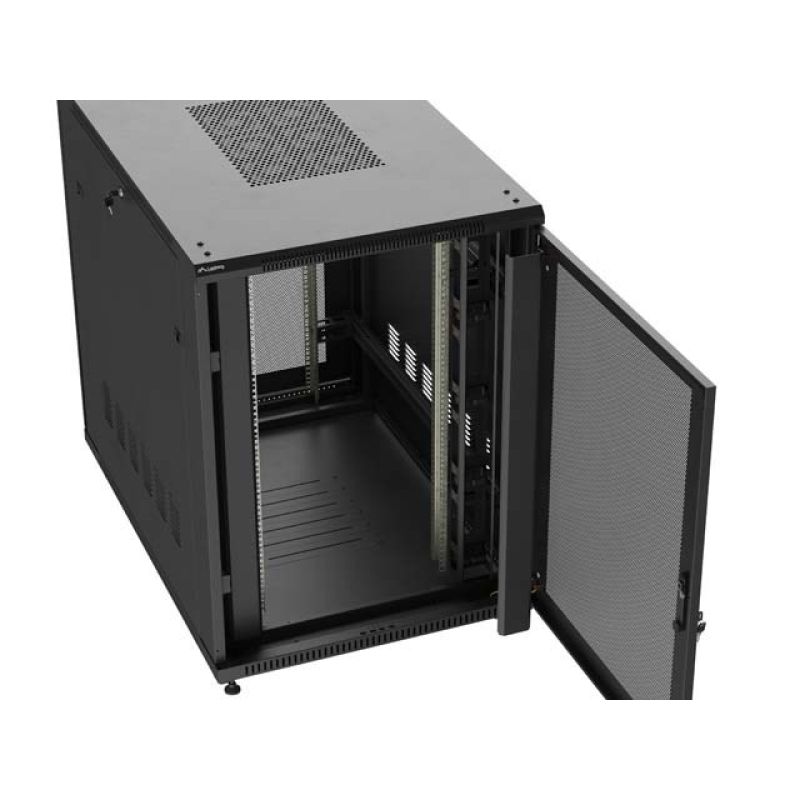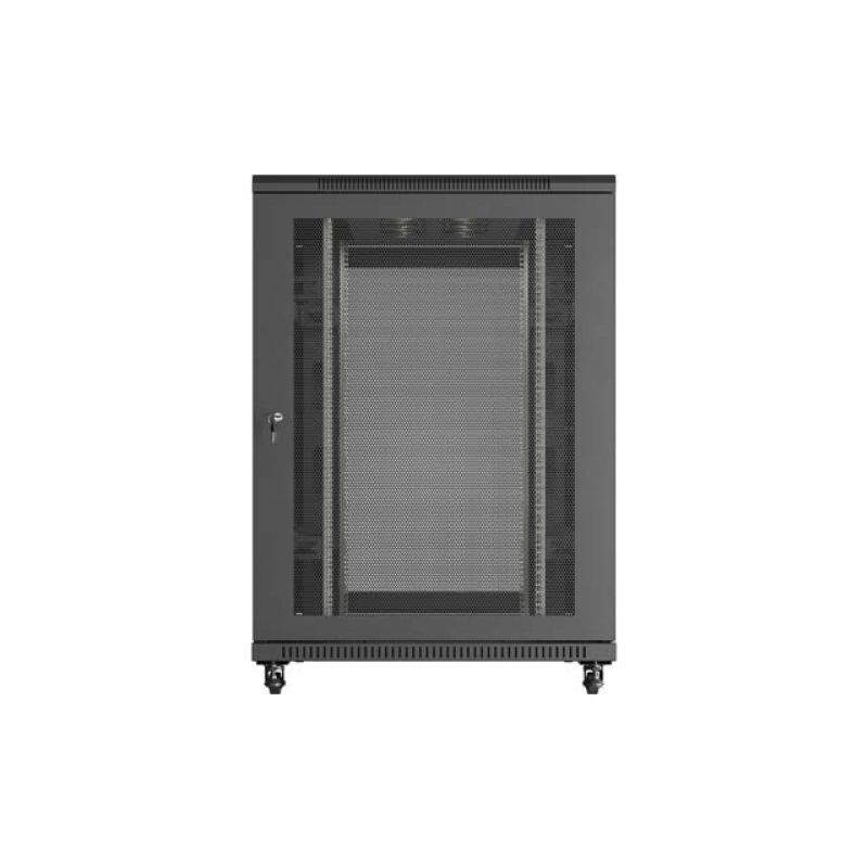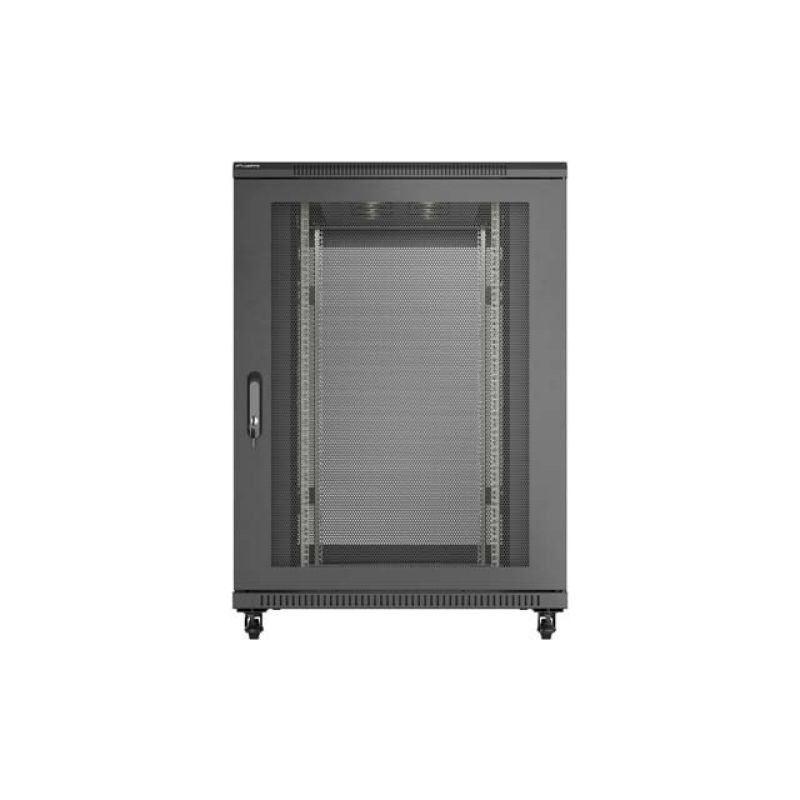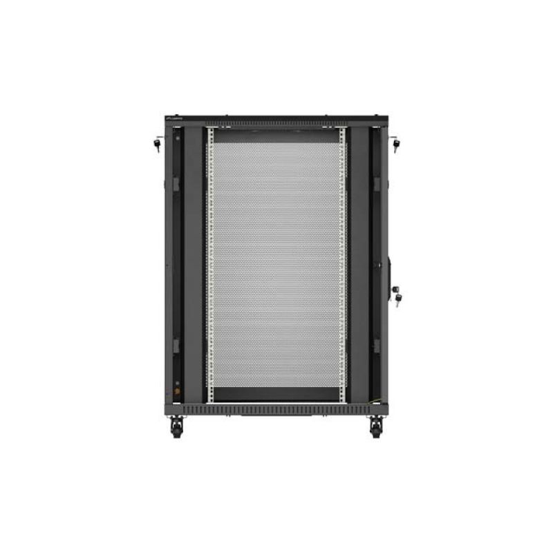12. 19" 22U 800x1200 schwarzer Lanberg Stand-Rackschrank mit perforierten Türen (flach verpackt)