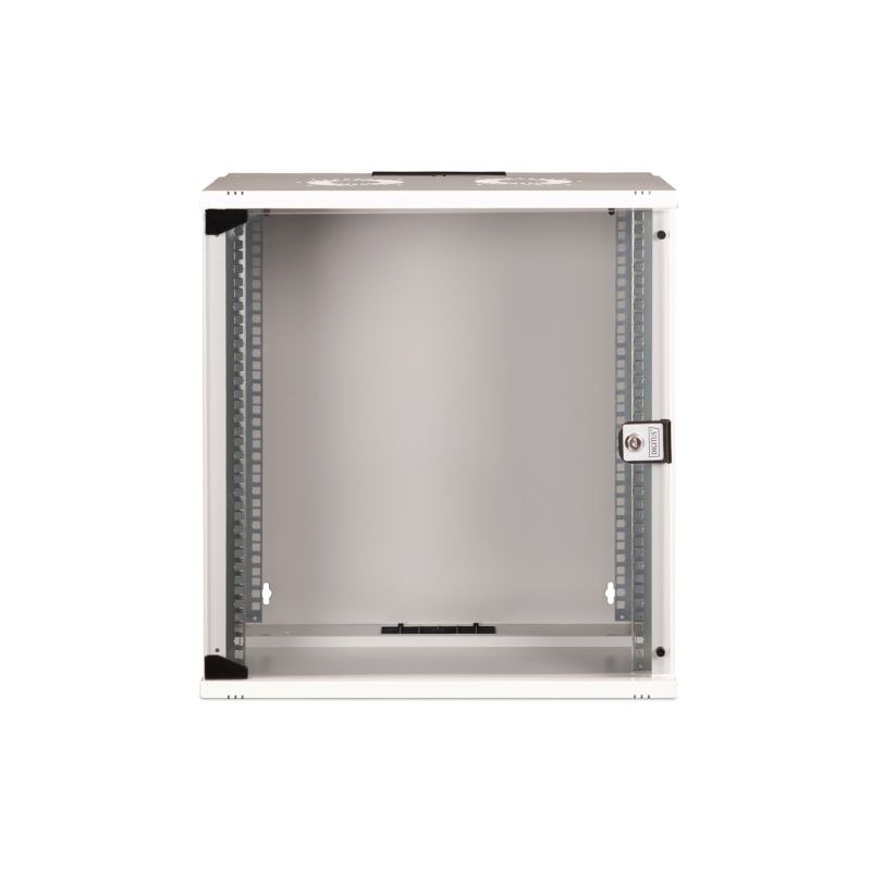 10. 19-Zoll-12-HE-Wandnetzwerkschrank, SOHO PRO 595 x 540 x 400 mm, Glastür, grau, unmontiert, 60 kg