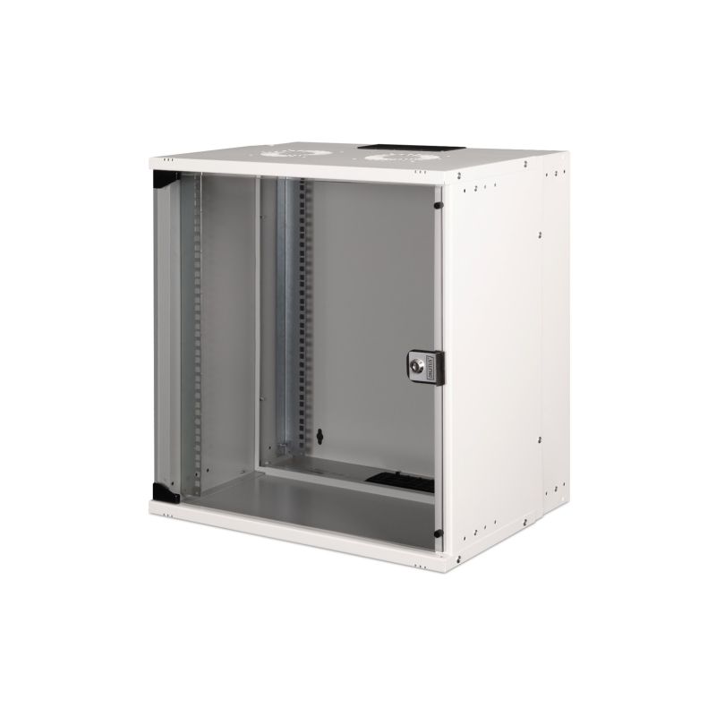 25. 19-Zoll-12-HE-Wandnetzwerkschrank, SOHO PRO 595 x 540 x 400 mm, Glastür, grau, unmontiert, 60 kg