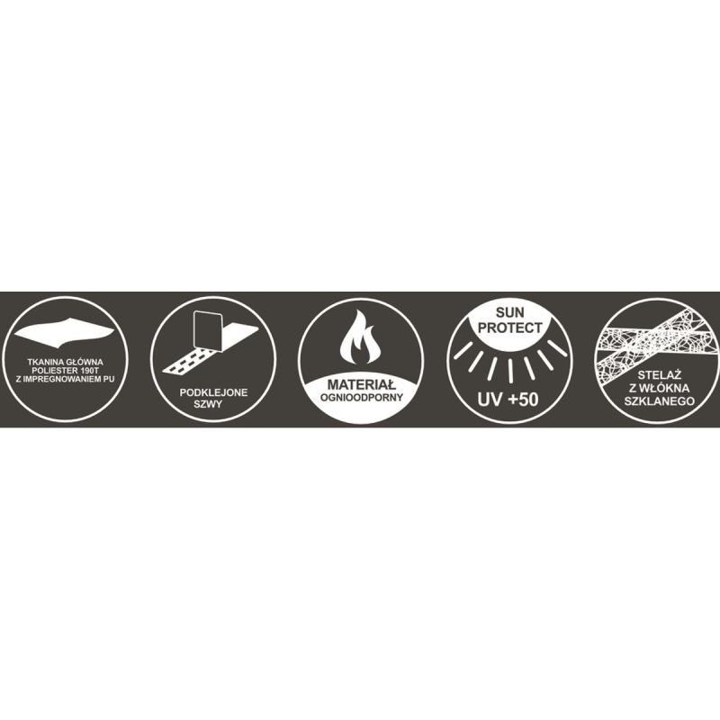 - Material: 190T Polyester mit PU-Imprägnierung, 7,9/6,9 mm Glasfaser, 120 g/m² PE-Boden