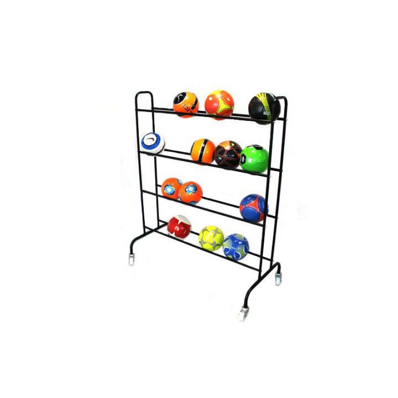 Robuster Stahlwagen auf Rädern. Bietet Platz für 20 Bälle.