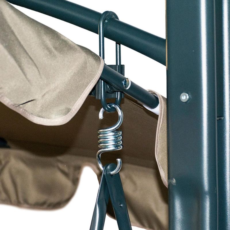 Mit einer maximalen Tragfähigkeit von 300 kg bietet es Sicherheit und Komfort für drei Personen gleichzeitig. Dank seiner robusten Stahlkonstruktion ist es besonders stabil und langlebig und eignet sich daher sowohl für den täglichen Gebrauch als auch für Familienfeiern im Freien.
