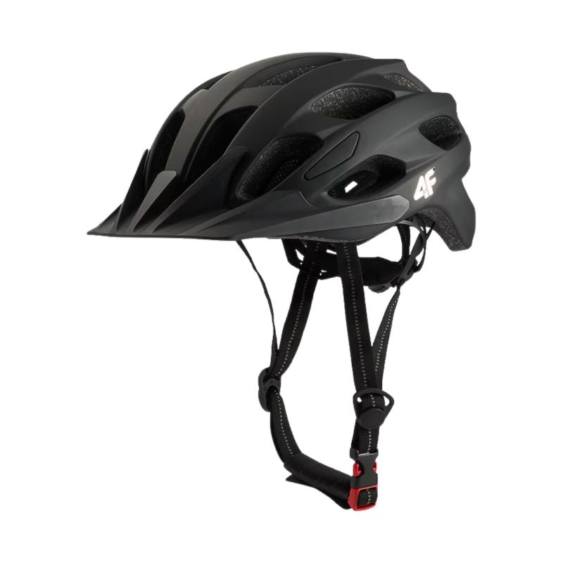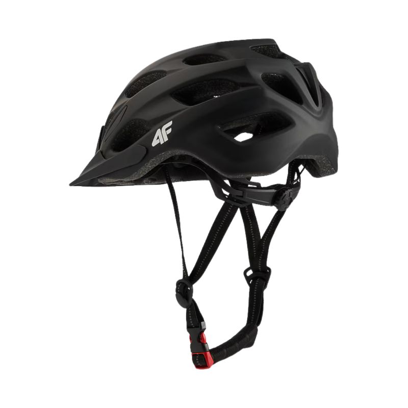 4F U135 Fahrradhelm, Größe S, 51–54 cm, Jet Black 4FWSS26AHELU135 20S. Der 4F-Helm eignet sich perfekt für Mountainbiken und Freizeitradfahren. Die In-Mold-Konstruktion (ABS/EPS) sorgt für geringes Gewicht und hohe Widerstandsfähigkeit und garantiert so effektiven Schutz. Das konstante Belüftungssystem unterstützt die Luftzirkulation und sorgt für angenehmen Tragekomfort. Das herausnehmbare Innenfutter mit Insektenschutzgitter verbessert Hygiene und erleichtert die Reinigung. Dank des Drehverschlusses am Hinterkopf lässt sich der Helm schnell anpassen, während der verstellbare Kinnriemen die Stabilität erhöht. Das Modell entspricht der Norm EN 1078, und reflektierende Elemente verbessern die Sichtbarkeit bei schlechten Lichtverhältnissen. Technische Daten: Größenbereich (Kopfumfang): 51–54 cm. In-Mold-Konstruktion mit ABS/EPS-Außenschale für geringes Gewicht bei gleichzeitig hoher Widerstandsfähigkeit gegen Beschädigungen und Kratzer. Feste Belüftungsöffnungen fördern die Luftzirkulation. Herausnehmbares Innenfutter mit Insektenschutzgitter. Verstellbarer Kopfumfang am Hinterkopf per Drehverschluss. Verstellbarer Kinnriemen mit Kinnschutz. Entspricht der europäischen Norm EN 1078. Reflektierende Elemente verbessern die Sichtbarkeit bei schlechten Lichtverhältnissen.