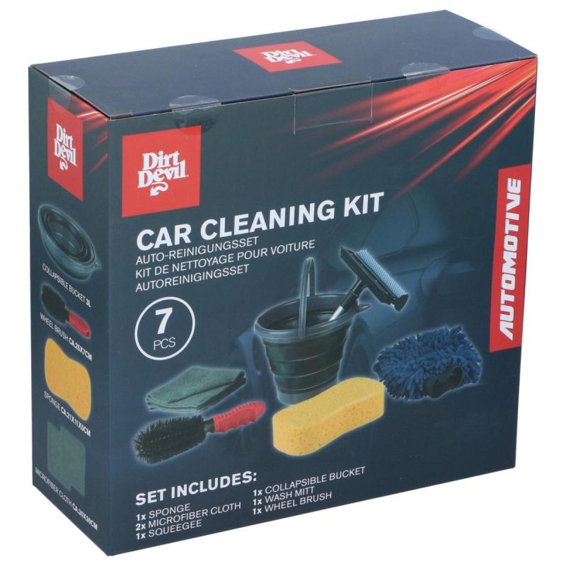 Mit dem DIRT DEVIL 7-teiligen Autoreinigungsset wird die Autopflege zum puren Vergnügen. Egal, ob Sie ein passionierter Fahrzeugaufbereiter sind oder einfach nur ein glänzendes Auto genießen möchten – dieses Set ist in jeder Situation Ihr zuverlässiger Begleiter.
