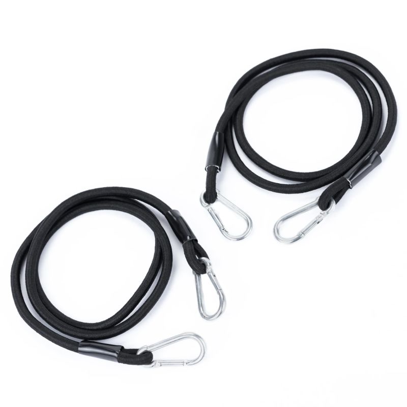 ✅ Sichere Aufhängung – Gummibänder mit Karabinerhaken und Abdeckungen lassen auch bei voller Spannung nicht locker.