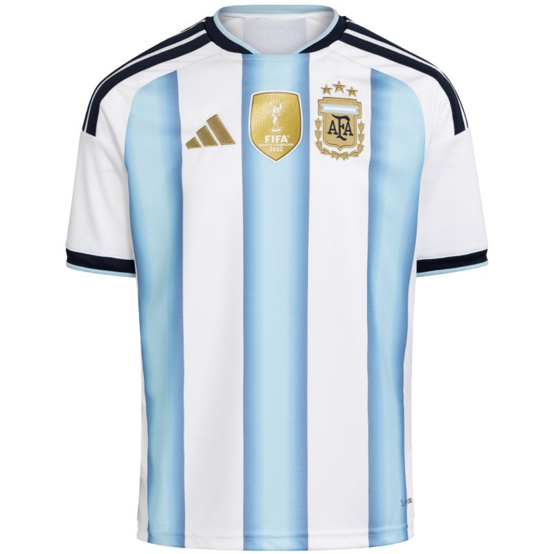 adidas Argentinien 26 Kinder-Trikot KA8119. Das adidas Argentinien 26 Heimtrikot ist von der Geschichte der argentinischen Nationalmannschaft inspiriert. Die adidas Climacool-Technologie sorgt für angenehmen Tragekomfort beim Sport, indem sie überschüssige Feuchtigkeit ableitet. Schnelltrocknendes Material. Drei Streifen an den Ärmeln und gestickte Teamlogos auf der Vorderseite. Material: 100 % recyceltes Polyester.