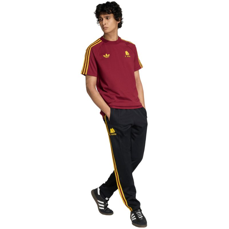 adidas AS Roma Originals Herren-T-Shirt, Burgunderrot, JZ7185. Dieses adidas T-Shirt vereint die klassischen Vereinsfarben mit einem modernen Design und ist eine stilvolle Hommage an die traditionsreiche Geschichte der Roma. Weiches Jersey aus Baumwolle und Polyester. Mit adidas Trefoil-Logo. Leicht taillierter Schnitt. Material: 52 % Baumwolle, 48 % Polyester.