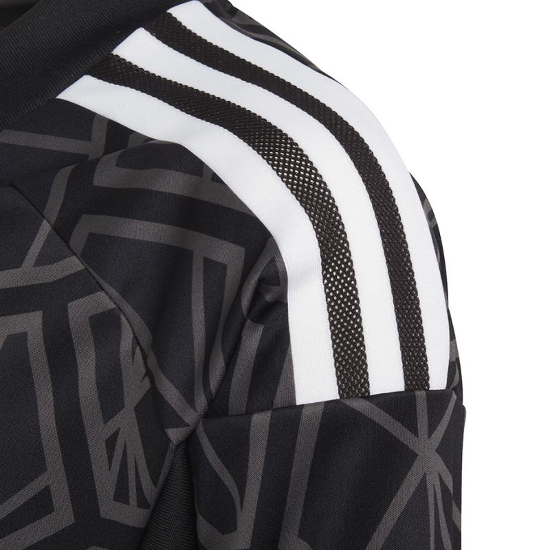 adidas Condivo 22 Langarmtrikot für Kinder, Schwarz HB1643. Dieses adidas Torwarttrikot für Kinder hilft dir, deine Abwehr zu verbessern. Schnelltrocknendes Material. Die Aeroready-Technologie belüftet den Körper und leitet Feuchtigkeit ab. Normale Passform. Kontrastgrafiken. Verlängerter Saum hinten. Kleine Seitenschlitze. V-Ausschnitt. Gerippte Einsätze an den Ärmeln und unter den Armen. Schultergurte. Etwas kürzere Ärmel. Kleines Logo. Material: 100 % recyceltes Polyester