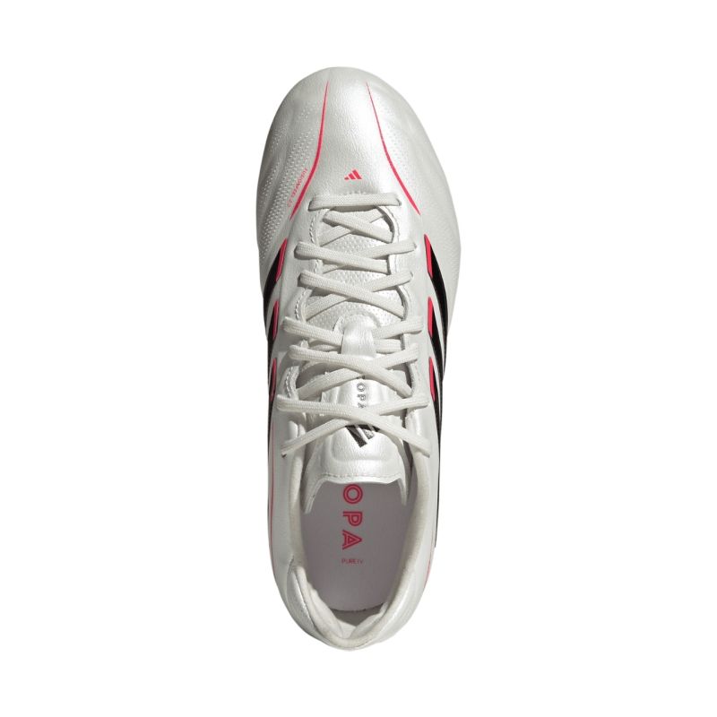 Die adidas Copa Pure IV Elite FG JR4406 Fußballschuhe sind für professionelle Fußballspiele auf festen Naturrasenplätzen konzipiert. Dank der Fusionskin-Technologie ist das Obermaterial besonders atmungsaktiv. Die Primeknit-Zunge bietet optimale Anpassung und sicheren Halt für maximalen Komfort, während die gepolsterte Einlegesohle für eine anatomische Passform sorgt. Die Schnürung bietet zusätzliche Stabilität. Ein speziell entwickeltes Stollenmuster gewährleistet eine optimale Druckverteilung. Die Außensohle mit ihrem optimierten Stollendesign garantiert zuverlässige Traktion. Diese Schuhe gehören zur Born For Goals Pack Kollektion. Spezifikationen: · Normale Passform · Schnürsenkel · Synthetische Einlegesohle · Synthetische Außensohle · Fusionskin-Technologie