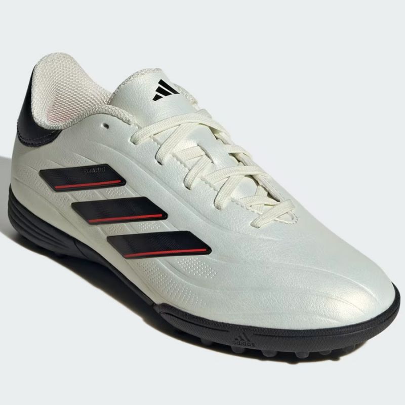 Um richtig zu spielen, brauchst du deine Teamkollegen auf deiner Seite und den Ball im Rücken. Genieße Bewegungsfreiheit in den bequemen, klassischen adidas Copa Pure II Fußballschuhen. Diese Junior-Fußballschuhe zeichnen sich durch ikonische Details und einen Vorfuß aus Kunstleder für einen ikonischen Look und ein ikonisches Tragegefühl aus. Die Gummi-Außensohle mit Stollen sorgt für einen stilvollen Auftritt auf Kunstrasen.