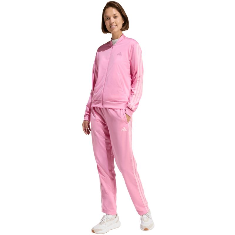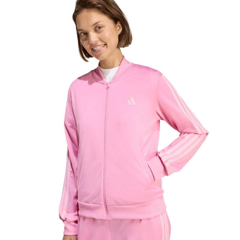 adidas Dayready Damen-Trainingsanzug Pink KB8160. Dieser adidas Damen-Trainingsanzug bietet optimalen Komfort bei sportlichen Aktivitäten und entspannten Momenten. Schnelltrocknendes Material aus recycelten Fasern. Details: · Material: 100 % recyceltes Polyester · Normale Passform mit mittelhohem Bund · Durchgehender Reißverschluss und Stehkragen · Vordertaschen an Hose und Jacke · Gerippte Bündchen und Saum · Elastischer Bund mit Kordelzug