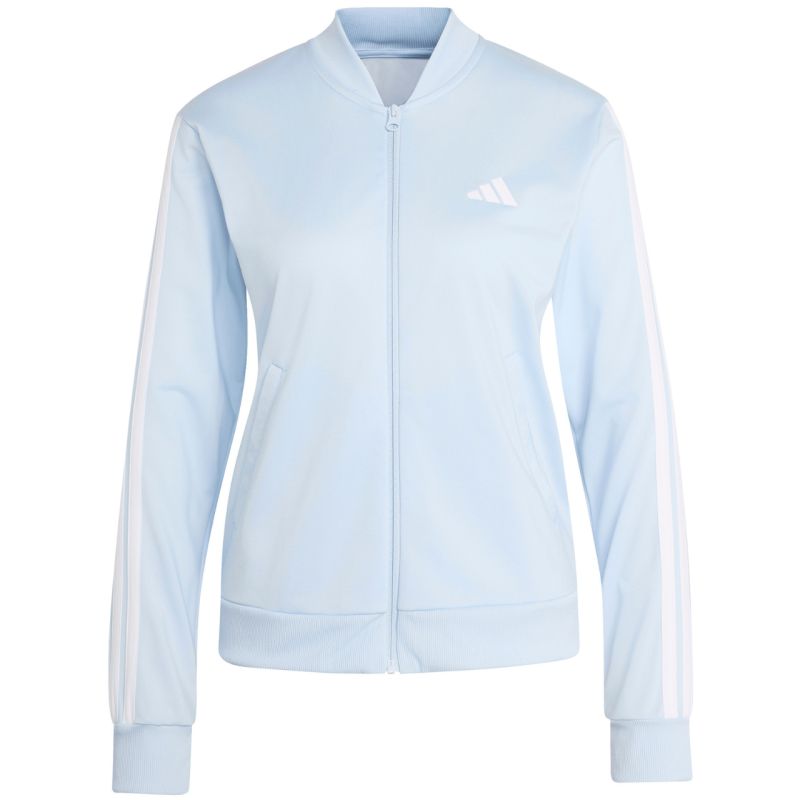 adidas Dayready Trainingsanzug für Damen, Blau, KB8165. Dieser adidas Trainingsanzug für Damen bietet optimalen Komfort bei sportlichen Aktivitäten und entspannten Momenten. Schnelltrocknendes Material aus recycelten Fasern. Details: · Material: 100 % recyceltes Polyester · Normale Passform mit mittelhohem Bund · Durchgehender Reißverschluss und Stehkragen · Vordertaschen an Hose und Jacke · Gerippte Bündchen und Saum · Elastischer Bund mit Kordelzug