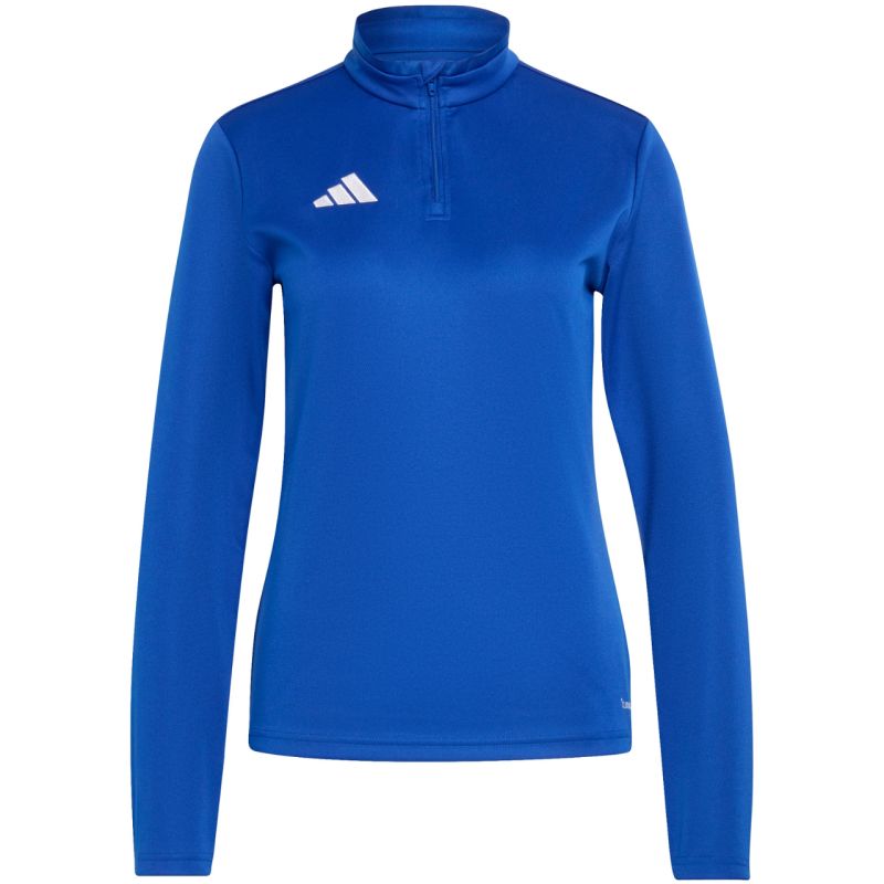 adidas Entrada 26 Trainingsshirt für Damen, Blau JZ6641. Dieses adidas Damen-Sweatshirt ist perfekt fürs Training. Es hat einen figurbetonten Schnitt und einen halben Reißverschluss. Die Climacool-Technologie leitet Schweiß ab und verteilt ihn. Gesticktes Logo. Material: 100 % recyceltes Polyester.
