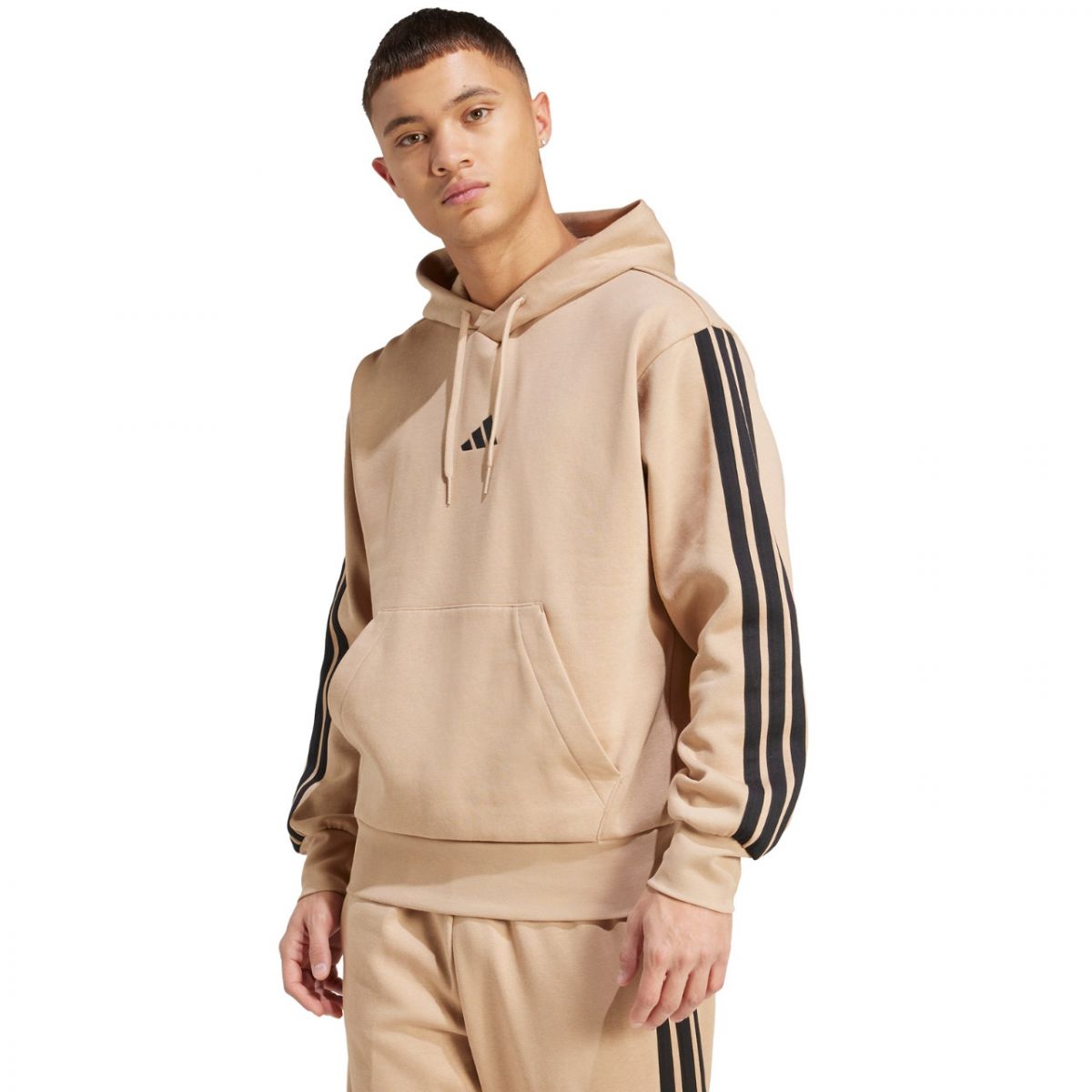 Herren adidas Essentials 3-Streifen Fleece-Hoodie Beige JX0695