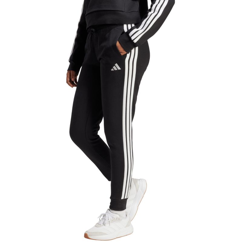 adidas Essentials 3-Streifen Fleece Slim Damenhose Schwarz und Weiß JX2543