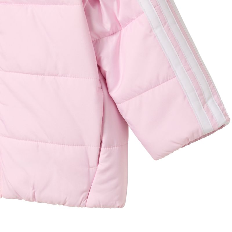 Diese adidas Kinderjacke ist perfekt für Wintertage. Sie hat eine Standard-Passform. Die horizontale Synthetikfüllung in Kombination mit der Climawarm-Technologie hält warm und leitet überschüssige Feuchtigkeit ab. Sie verfügt über einen durchgehenden Reißverschluss. Die Kapuze ist abnehmbar und verstellbar. Reflektierende Details. Material: 100 % recyceltes Polyester.