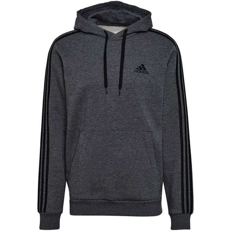 Herren adidas Essentials Fleece 3-Streifen Hoodie Dunkelgrau GK9082