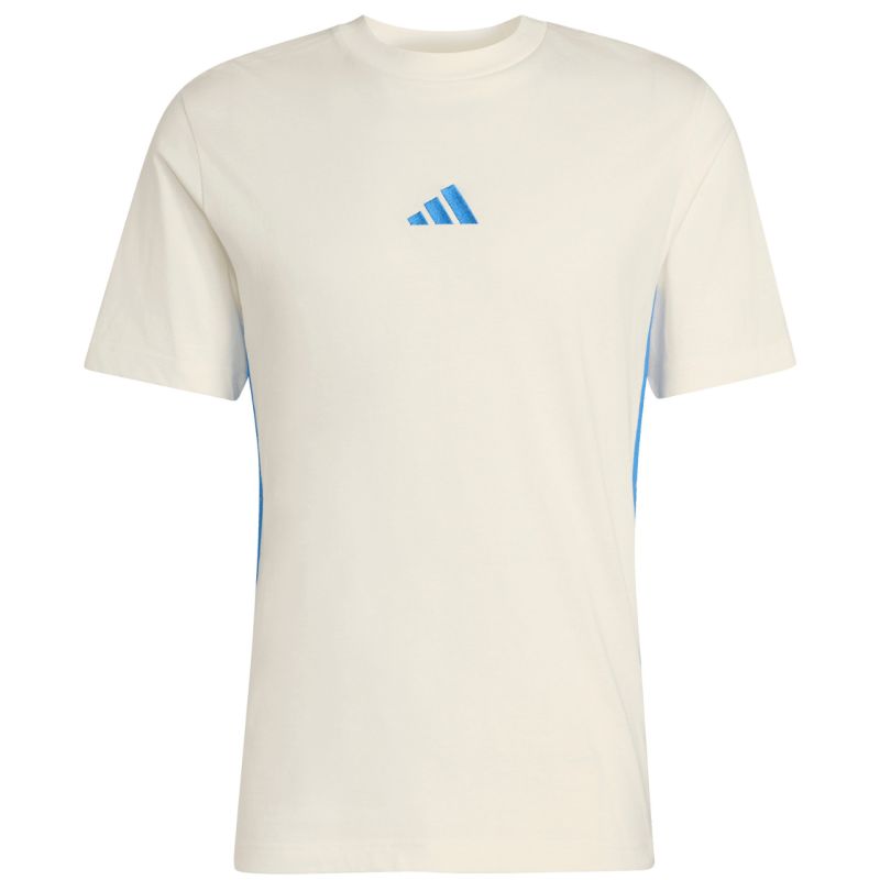 adidas Essentials Herren-T-Shirt mit 3 Streifen, Creme KC0888. Dieses adidas Herren-T-Shirt ist perfekt für jeden Tag. Normale Passform. Streifen an den Seiten. Kleines Markenlogo auf der Vorderseite. Weiches Material. Material: 100 % Baumwolle.