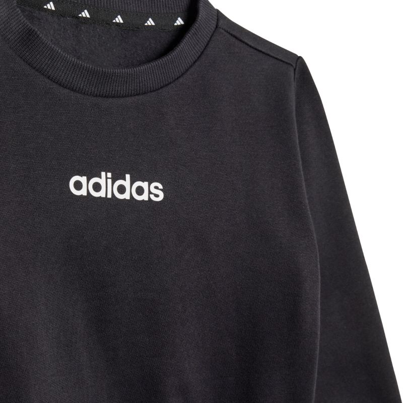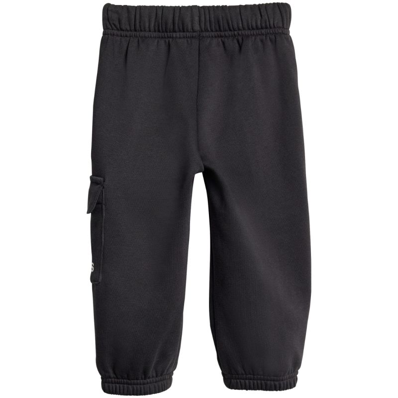 adidas Essentials Jogginganzug für Kinder, Schwarz JC9745. Dieser adidas Trainingsanzug für Kinder ist perfekt für den Alltag. Sweatshirt und Hose bestehen aus Baumwolle und Polyester. Der Anzug hat eine normale Passform. Sweatshirts bis Größe 86 cm haben Druckknöpfe an den Schultern. Die Hose hat einen elastischen Bund mit Kordelzug zur Weitenregulierung. Die Beine sind mit elastischen Bündchen versehen. Cargotaschen. Material: 70 % Baumwolle, 30 % Polyester