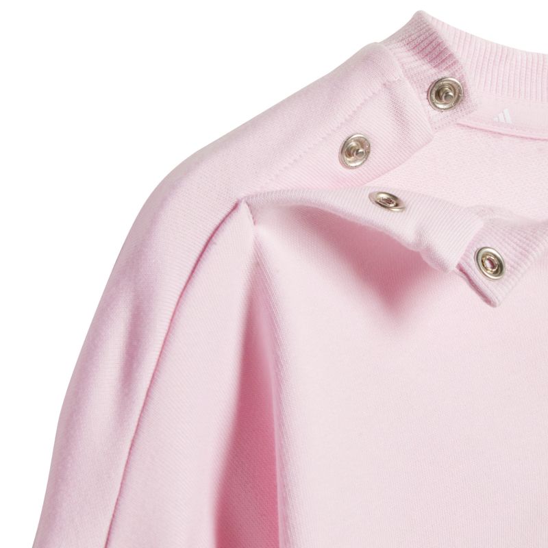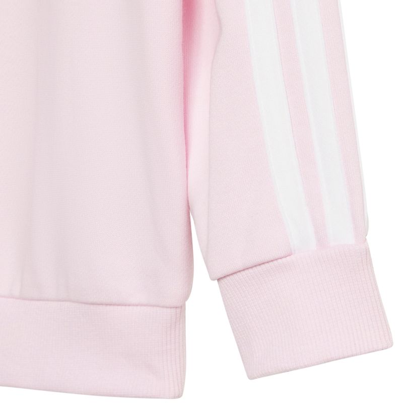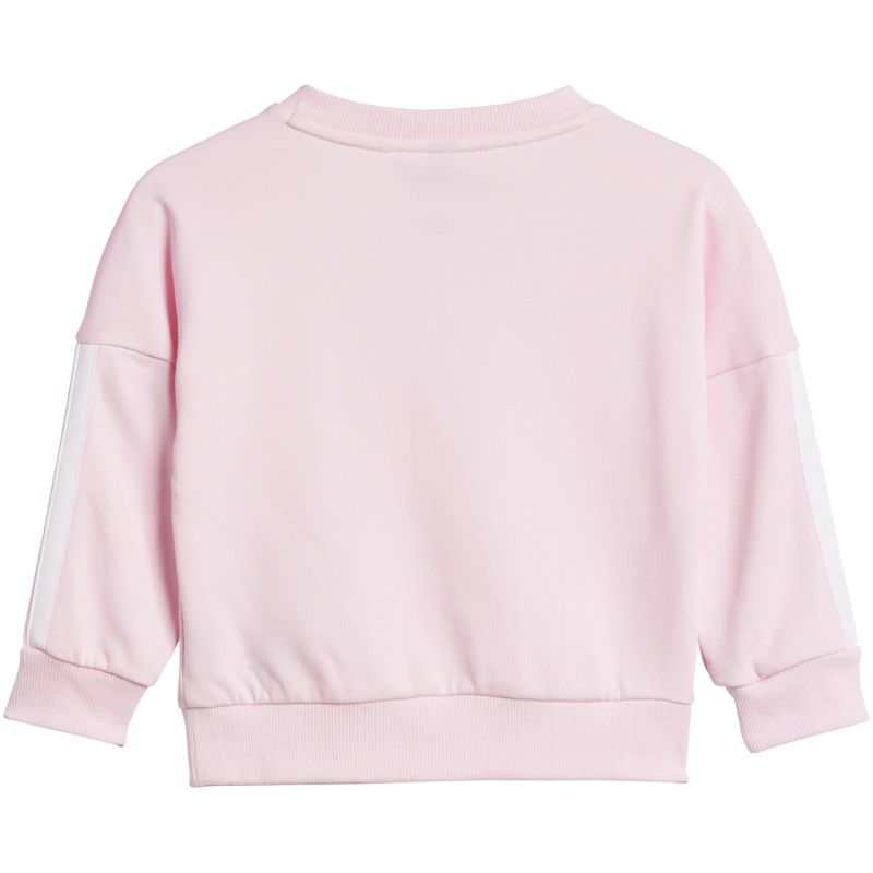 adidas Essentials Jogginganzug für Kinder, Pink und Lila, JD6482. Dieser adidas Trainingsanzug für Kinder ist perfekt für den Alltag. Sweatshirt und Hose bestehen aus Baumwolle und Polyester. Normale Passform. Sweatshirts bis Größe 86 cm haben einen Druckknopfverschluss an der Schulter. Die Hose hat einen elastischen Bund und elastische Beinabschlüsse. Material: 70 % Baumwolle, 30 % Polyester.