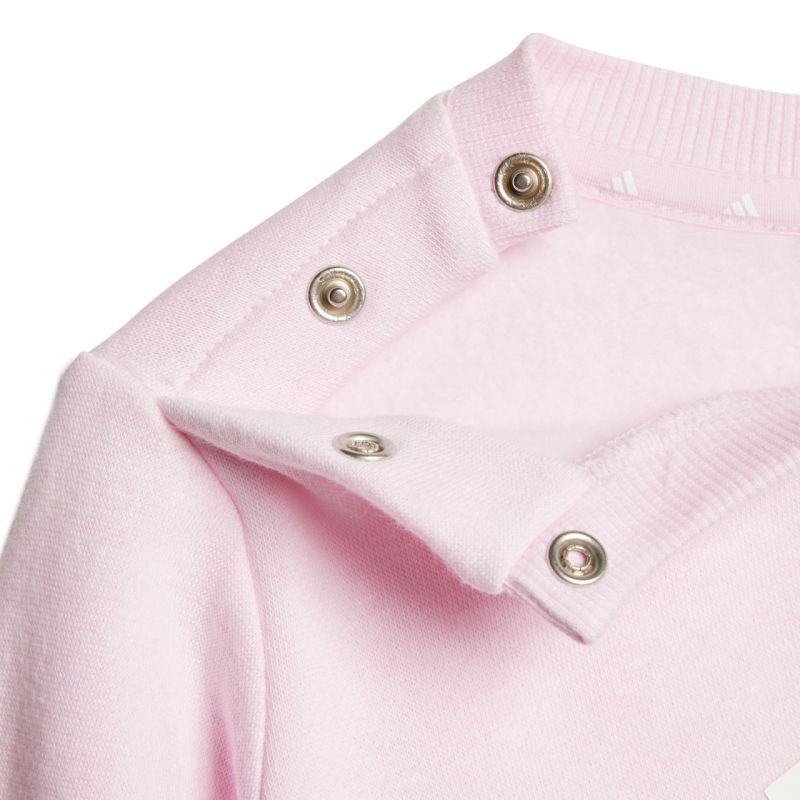 adidas Essentials Pinker Trainingsanzug für Kinder JC9645. Dieser adidas Trainingsanzug für Kinder ist perfekt für den Alltag. Sweatshirt und Hose bestehen aus Baumwolle und Polyester. Normale Passform. Sweatshirts bis Größe 86 cm haben Druckknöpfe an den Schultern. Die Hose hat einen elastischen Bund mit Kordelzug zur Weitenregulierung. Die Beinabschlüsse sind elastisch. Material: 70 % Baumwolle, 30 % Polyester.