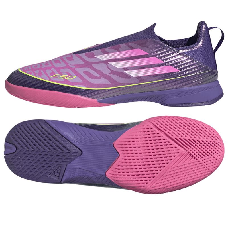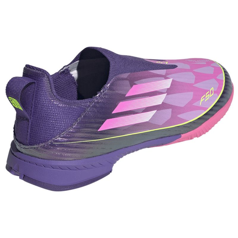 Die F50 League Laceless Indoor-Fußballschuhe wurden entwickelt, um jungen Fußballern zu helfen, ihre Geschwindigkeit zu entfalten. Bei diesen Schuhen dreht sich alles um Leistung und Stil. Das Fiberskin-Obermaterial mit seiner speziellen Soft-Touch-Konstruktion bietet Halt mit strategisch platzierten 3D-Linien. Ein 2D-Sprintgrid-Druck dient als Spritzschutz und imitiert optisch die Details der High-End-Modelle. Diese Schuhe verfügen über eine synthetische, schwebende Zunge. Sie ist leicht und verfügt über Perforationen für zusätzliche Luftzirkulation. Die abriebfeste, nicht abfärbende Gummi-Außensohle bietet zuverlässigen Halt auf Hallenböden. Mit dem adidas Branding und dem legendären F50-Logo sorgen diese Schuhe dafür, dass Ihr Kind auf dem Spielfeld Eindruck macht.