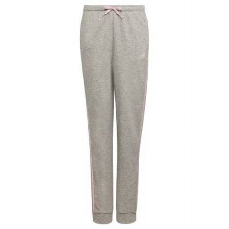 - Modische Adidas Jogginghose in Grau mit rosa Streifen und Logo.