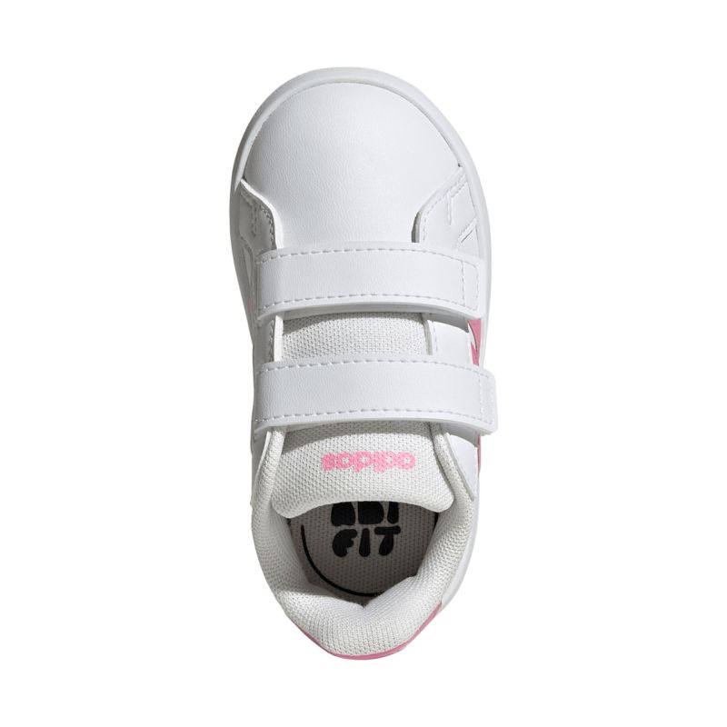 adidas Grand Court 3.0 CF I JP9376 Kinderschuhe. Diese adidas Schuhe wurden speziell für aktive Kinder entwickelt. Obermaterial aus Synthetik. Textilfutter. Praktischer Klettverschluss. Textilzunge. Einteilige EVA-Zwischensohle. Gummiaußensohle.