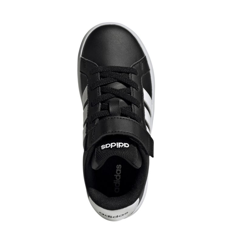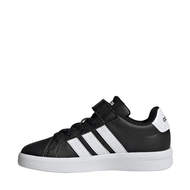 adidas Grand Court 3.0 Kinderschuhe Schwarz HP3533. Diese adidas Kinderschuhe vereinen Komfort und modernes Design. Die leichten Schuhe bieten bequemen Schutz für den Fuß im Alltag. Obermaterial aus Synthetik mit Textilfutter. Gummisohle. Praktischer Klettverschluss. Elastische Schnürriemen.