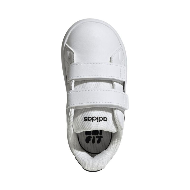 adidas Grand Court 3.0 Kleinkinderschuhe, weiß, HP3534. Diese adidas Schuhe wurden speziell für aktive Kinder entwickelt. Obermaterial aus Synthetik. Textilfutter. Praktischer Klettverschluss. Zunge aus Textil. Einteilige EVA-Zwischensohle. Gummisohle.
