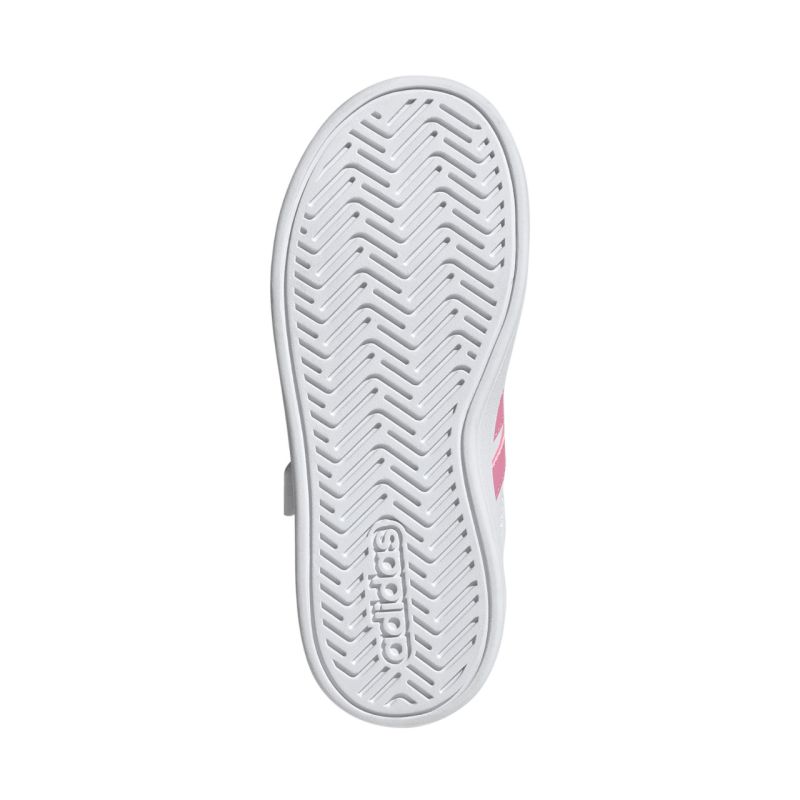 adidas Grand Court 3.0 Kinderschuhe Weiß und Rosa JP9371. Diese adidas Kinderschuhe vereinen Komfort mit modernem Design. Die leichten Schuhe bieten bequemen Schutz für den Fuß im Alltag. Obermaterial aus Synthetik mit Textilfutter. Gummisohle. Praktischer Klettverschluss. Elastische Schnürriemen.