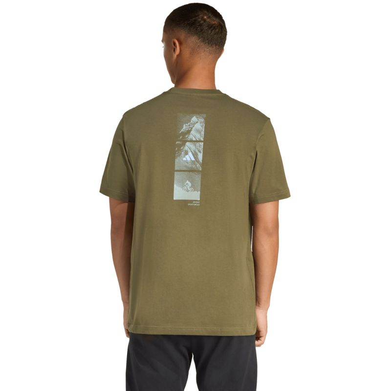adidas Herren-Mountainbike-T-Shirt mit Grafikprint, Olivgrün KB2537. Dieses adidas Herren-T-Shirt ist perfekt für den Alltag. Normale Passform. Kurze Ärmel. Weiches, bequemes Material. Gummierter Siebdruck auf der Rückseite. Kleines Logo auf der Vorderseite. Material: 100 % Baumwolle