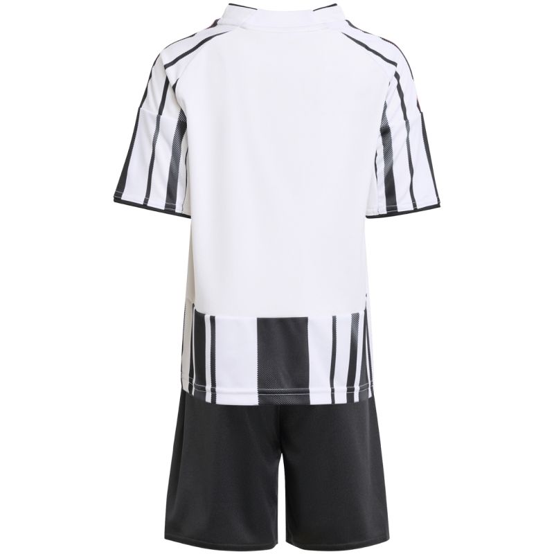 Das adidas Juventus Heimtrikot 25/26 für Kinder, Weiß und Schwarz JN5220. Dieses adidas Kinder-Set (Trikot, Shorts und Stutzen) wird junge Juventus-Fans begeistern. Das schnelltrocknende Material leitet dank Aeroready-Technologie überschüssige Feuchtigkeit ab. Es hat eine normale Passform. Die Shorts sind mit einem elastischen Bund ausgestattet. Das Wappen des FC Bayern München ist auf Shorts und Trikot abgebildet. Material: 100 % recyceltes Polyester.