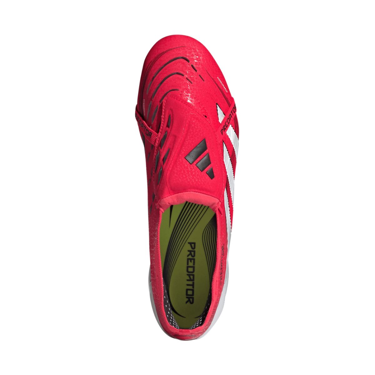 adidas Predator Elite FT FG ID8966 Fußballschuhe. Professionelle adidas Fußballschuhe aus der Pure Victory Pack Kollektion sind für das Spiel auf festen, natürlichen Oberflächen konzipiert. Griffige Strikeskin-Elemente sind linear auf dem Textilobermaterial platziert. Die Schuhe verfügen außerdem über eine synthetische Auflage. HybridTouch-Obermaterial. Zweiteiliger Primeknit-Kragen. Umklappbare Zunge. Flexible Dual-Platten-Außensohle mit differenzierten Stollen. Spezifikationen: Synthetisches Obermaterial mit griffigen Strikeskin-Elementen. Hybridtouch 2.0 im Vorfußbereich. adidas Primeknit-Kragen. Controlframe 2.0 FG-Außensohle. Standardpassform. Schnürverschluss.