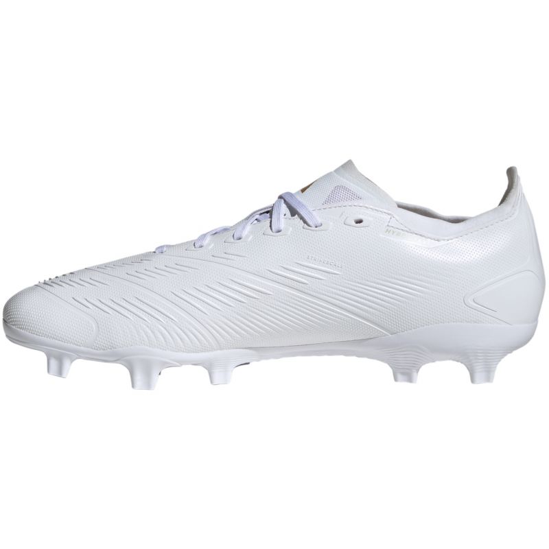 adidas Predator League FG IF6346 Fußballschuhe. Diese semiprofessionellen adidas Predator Fußballschuhe sind für Spieler konzipiert, die lieber auf festem Naturrasen spielen. Sie sind Teil der Dayspark Pack Kollektion. Das synthetische Hybridfeel-Obermaterial ist mit einer konvexen Textur überzogen. Strikescale-Grip-Elemente an der Fußinnenseite sorgen für natürliche Kontrolle. Die geformte Ferse sorgt für eine natürliche Kontrolle. Der Schnürverschluss verfügt über eine einteilige, gefütterte Zunge. Die Sohle ist mit gegossenen Stollen versehen.