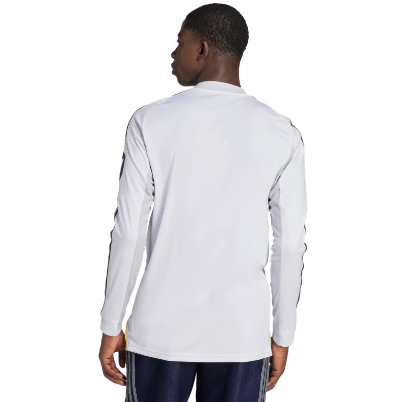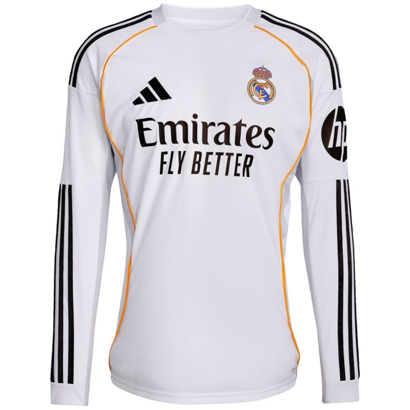 adidas Real Madrid Heimtrikot 25/26, Langarm, Weiß, JN8884. Dieses adidas Herren-Heimtrikot mit langen Ärmeln für die Saison 2025/26 ist ein echtes Highlight für Real Madrid-Fans. Es zelebriert die kürzlich erfolgte Renovierung des Bernabéu-Stadions und greift subtile Formen, Texturen und Farben auf, die seiner langen und traditionsreichen Geschichte entlehnt sind. Dieses vom Erbe der „Königlichen“ inspirierte Fan-Trikot ist ein Must-have für jede Sammlung. Das Produkt besteht zu 100 % aus recycelten Materialien. Spezifikationen: Material: 100 % recyceltes Polyester, schmale Passform, Rundhalsausschnitt, atmungsaktive Mesh-Einsätze, gesticktes Real Madrid-Wappen