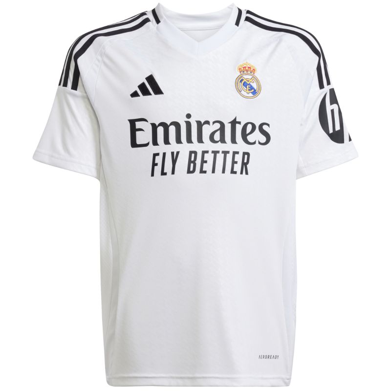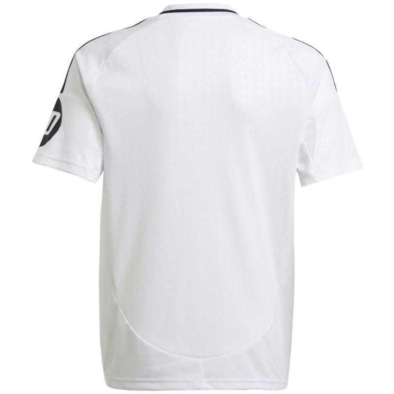 adidas Real Madrid Heimtrikot für Kinder 24/25 (Weiß) JX2139 Das adidas Heimtrikot für Kinder der Saison 2024/25 ist ein echtes Highlight für Real Madrid-Fans. Das Hahnentrittmuster dieses Fußballtrikots ist von den „Chulapo“-Trikots des jährlichen San-Isidro-Festivals in Madrid inspiriert und verleiht ihm einen stylischen Touch. Dieses traditionsreiche Fan-Trikot der „Königlichen“ ist ein Must-have für jede Sammlung. Das Produkt besteht zu 100 % aus recycelten Materialien. Spezifikationen: Material: 100 % Polyester (recycelt) Normale Passform V-Ausschnitt Aeroready Mesh-Einsätze an den Seiten Gesticktes Real Madrid-Wappen