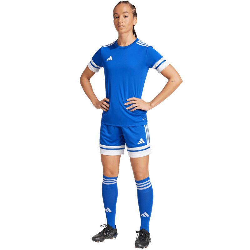 adidas Squadra 25 Damenshorts, Blau JJ0015. Die adidas Squadra Damenshorts sind für alle Spielerinnen, die ihr Team ununterbrochen zum Sieg führen wollen. Der elastische Bund ist mit einem Kordelzug verstellbar. Die Aeroready-Technologie hält dich bis zum Ende des Spiels oder Trainings trocken. Schnelltrocknende, recycelte Fasern. Material: dicht gestrickt, 100 % recyceltes Polyester.