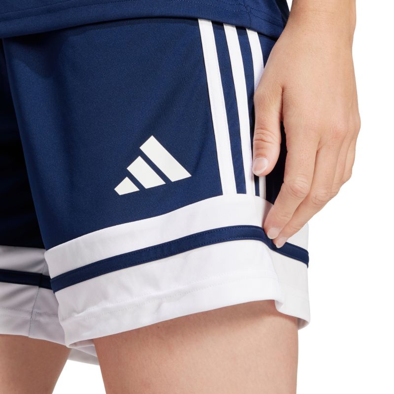 adidas Squadra 25 Damen-Shorts, Marineblau JJ0014. Diese adidas Squadra Damen-Shorts sind perfekt für alle Spielerinnen, die ihr Team ohne Unterbrechung zum Sieg führen wollen. Der elastische Bund ist mit einem Kordelzug verstellbar. Die Aeroready-Technologie hält dich bis zum Ende des Spiels oder Trainings trocken. Schnelltrocknende, recycelte Fasern. Material: dicht gestrickt, 100 % recyceltes Polyester