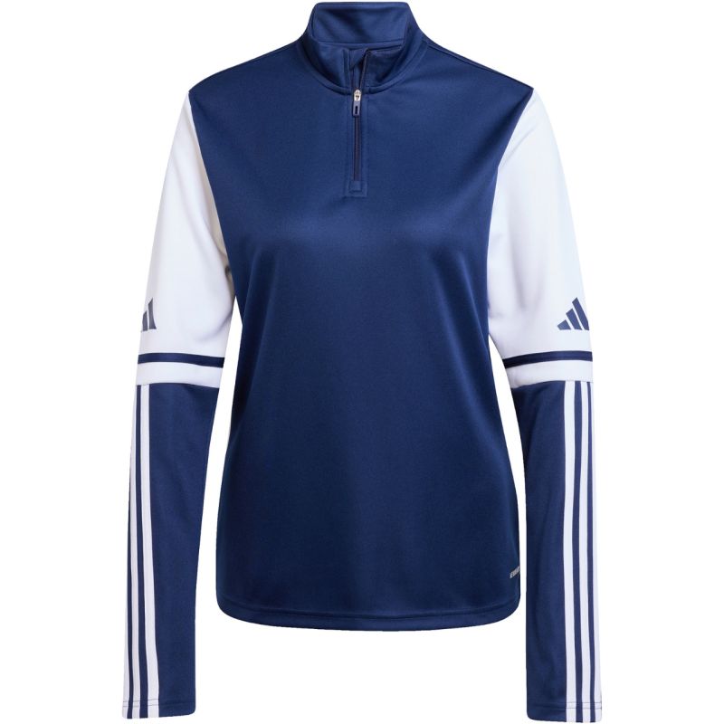 adidas Squadra 25 Trainingsshirt für Damen, Marineblau, JD3017. Dieses adidas Damen-Sweatshirt ist ideal fürs Training. Es hat eine normale Passform. Das schnelltrocknende Material mit Aeroready-Technologie leitet überschüssige Feuchtigkeit ab. Der Reißverschluss auf Brusthöhe ist mit einem Kinnschutz versehen. Das Shirt hat einen Stehkragen und ein kleines Logo. Streifen an einigen Ärmeln runden das Design ab. Dieses Produkt besteht aus hochwertigen Recyclingmaterialien. Material: 100 % recyceltes Polyester.