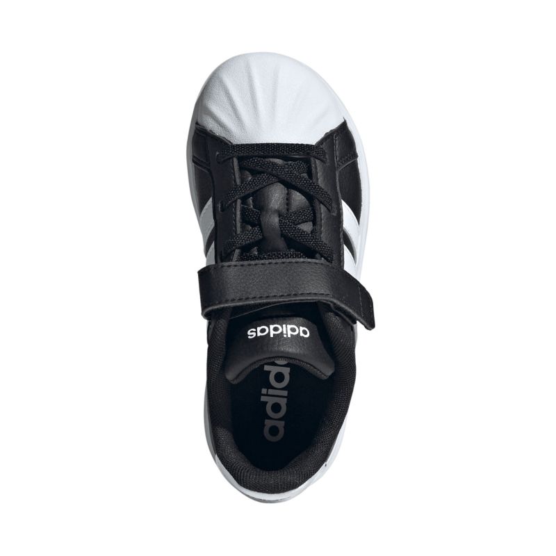 adidas Streettalk Schwarze Kinderschuhe JQ8593. Diese adidas Kinderschuhe sind perfekt für den Alltag. Sie haben ein Obermaterial aus Synthetik, eine muschelförmige Zehenkappe und ein Textilfutter für optimalen Tragekomfort. Der Klettverschluss und die elastischen Riemen erinnern an klassische Schnürsenkel. Die Gummisohle sorgt für sicheren Halt.