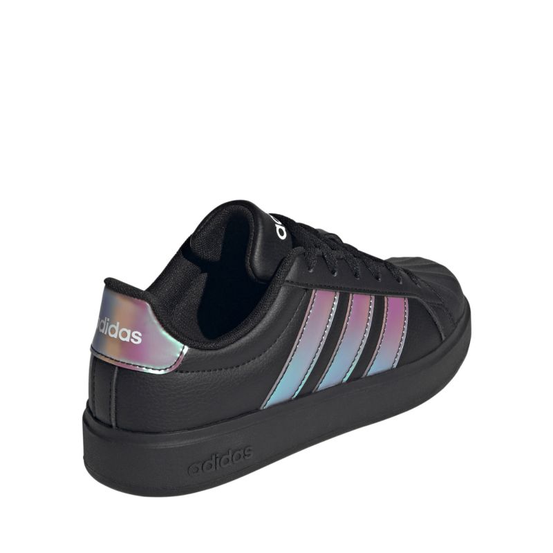 adidas Streettalk Schwarze Kinderschuhe JQ1806. Diese adidas Kinderschuhe sind perfekt für den Alltag. Sie haben ein Obermaterial aus Synthetik, eine Zehenkappe aus robustem Material und ein Textilfutter für optimalen Tragekomfort. Klassische Schnürung für einfaches Anziehen. Gummisohle.