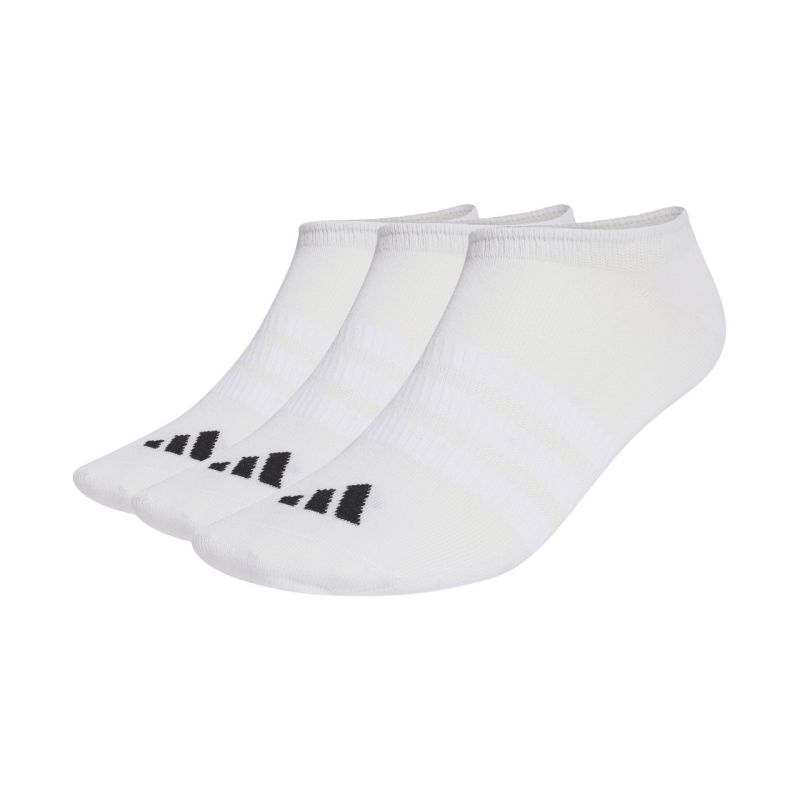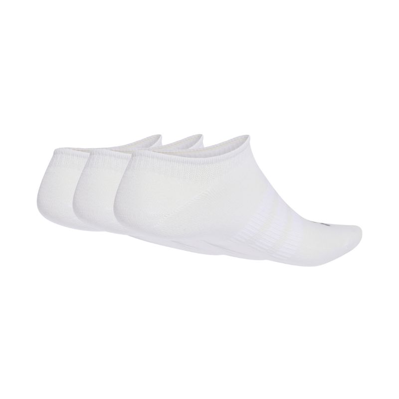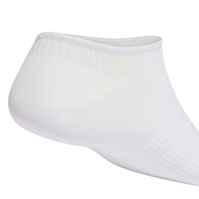 adidas Thin&Light Sportswear No Show Socken, 3 Paar, Weiß JZ0534. Diese adidas Socken sind perfekt für jeden Tag. Das leichte, baumwollreiche Strickmaterial ist mit elastischen, schnelltrocknenden Fasern für zuverlässigen Tragekomfort angereichert. Bequeme, fußumschließende Passform. Unterstützung für Fußgewölbe und Knöchel. Kurzes, unsichtbares Design. Ein vielseitiges Modell in einer klassischen Farbe mit dem Markenlogo. Dieses Set enthält 3 Paar kurze Socken. Material: 58 % Baumwolle, 36 % recyceltes Polyester, 3 % Elastan, 2 % Elastodien, 1 % recyceltes PA6