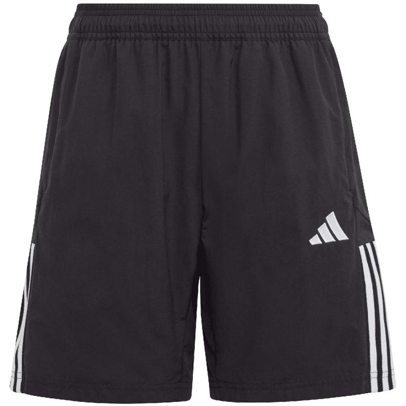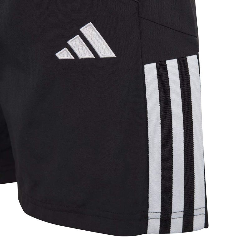 adidas Tiro 23 Competition Freizeitshorts für Kinder, Schwarz HI4716. Diese adidas Shorts eignen sich perfekt für sportliche Aktivitäten und Freizeit. Sie haben einen elastischen Bund mit Kordelzug und ein gesticktes Logo. Sie gehören zur Tiro Fußballkollektion. Material: 100 % recyceltes Polyester.