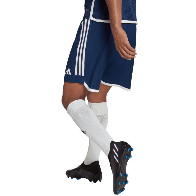 adidas Tiro 23 Competition Match Shorts für Herren, Marineblau (HT5697). Diese adidas Shorts für Herren sind ideal für Wettkämpfe. Sie gehören zur Tiro 23 Kollektion und verfügen über einen elastischen Bund mit innenliegendem Kordelzug. Die Aeroready-Technologie leitet überschüssige Feuchtigkeit vom Körper ab. Material: 100 % recyceltes Polyester