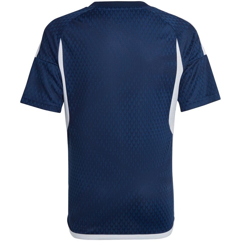 Dieses adidas Kindertrikot ist perfekt für Fußballspiele. Normale Passform. V-Ausschnitt. Mesh-Einsätze unter den Armen. Die Aeroready-Technologie leitet überschüssige Feuchtigkeit ab. Recycelte Fasern. Material: 100 % recyceltes Polyester
