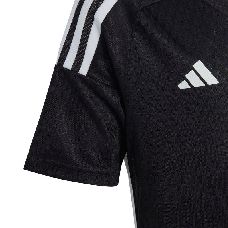 adidas Tiro 23 Wettkampf-Spieltrikot für Kinder, Schwarz IC7461. Dieses adidas Kinder-Trikot ist perfekt für Fußballspiele. Normale Passform. V-Ausschnitt. Mesh-Einsätze unter den Armen. Aeroready-Technologie leitet überschüssige Feuchtigkeit ab. Recycelte Fasern. Material: 100 % recyceltes Polyester.