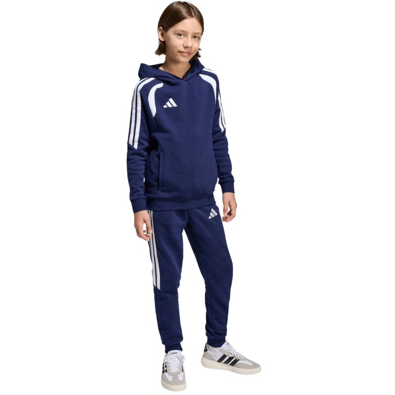 adidas Tiro 26 League Trainingshose für Kinder, Marineblau JY9673. Diese adidas Tiro Hose für Kinder ist perfekt zum Entspannen zwischen den Trainingseinheiten. Sie besteht aus einer Mischung aus atmungsaktiver Baumwolle und strapazierfähigen Polyesterfasern. Die Hose hat eine normale Passform und gerippte Beinabschlüsse. Der elastische Bund mit innenliegendem Kordelzug sorgt für optimale Passform. Seitliche Reißverschlusstaschen. Material: 70 % Baumwolle, 30 % Polyester.